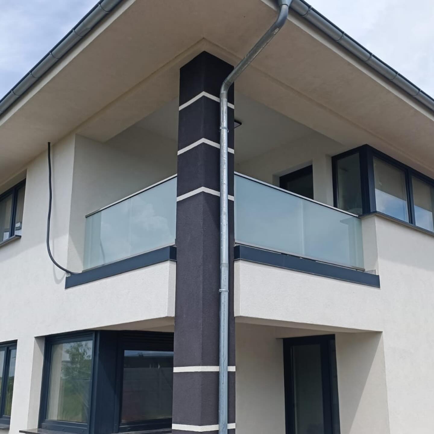 Montujemy balustrady aluminiowe na wymiar do domów i inwestycji: balkonowe, tarasowe, schodowe i francuskie. Dwa dopracowane systemy profili — słupki kwadratowe z poręczą prostokątną lub słupki okrągłe z poręczą okrągłą. Wykończenia: malowanie proszkowe RAL lub anodowanie. Na życzenie wypełnienia szklane VSG.